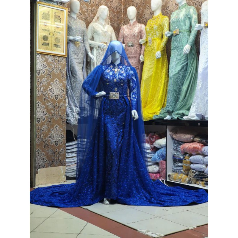 Termurah gaun pengantin panjang wedding dress biru.